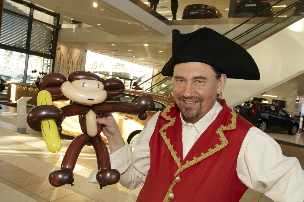 Till barnkalaset kan du även boka ballongfigurer. Att se någonting skapas mitt framför ögonen är alltid fascinerande. När det sen sker med ett så ömtåligt material som ballonger ger de det hela en extra dimension. Som CBA – Certified Balloon Artist kan jag skapa det mesta med ballonger. Alltifrån hundar, apor, rymdfigurer m.m.